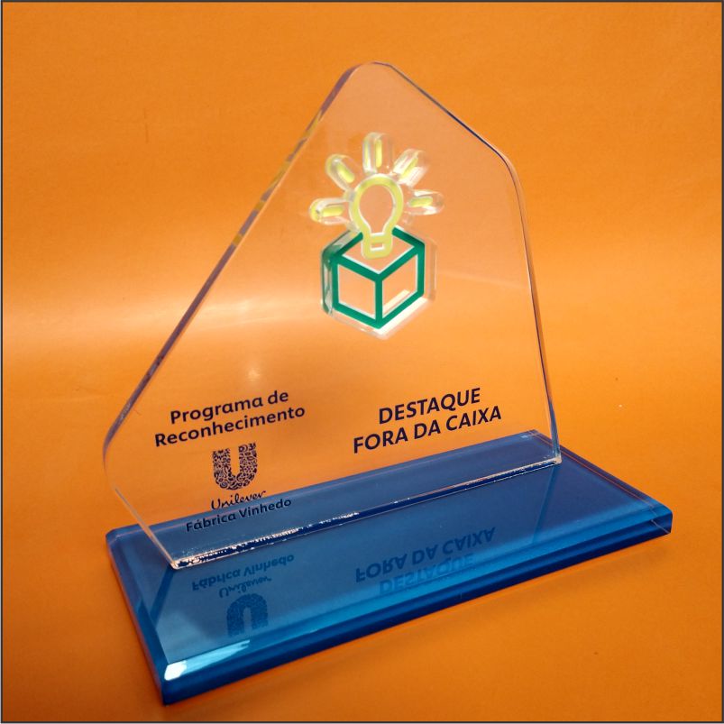 Trofeu acrilico placa 8mm base 10mm tamanho 15cm = 90,00