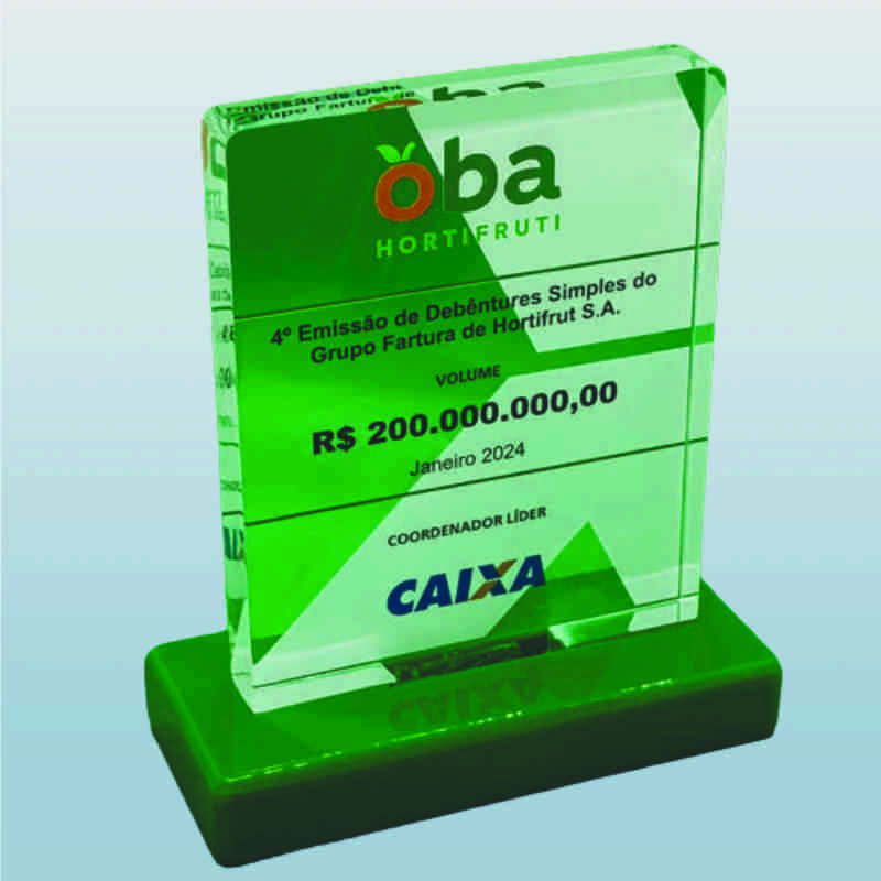 TROFEU ACRILICO, PLACA 10MM E BASE 17MM 17X12 = 150,00
