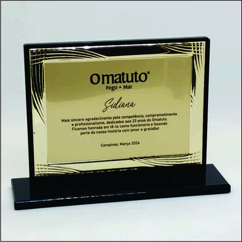 trofeu em acrilico preto, placa 17 x13