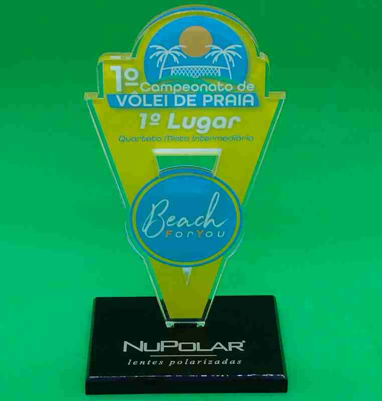Trofeu acrilico placa 8mm base 10mm tamanho 17cm = 120,00