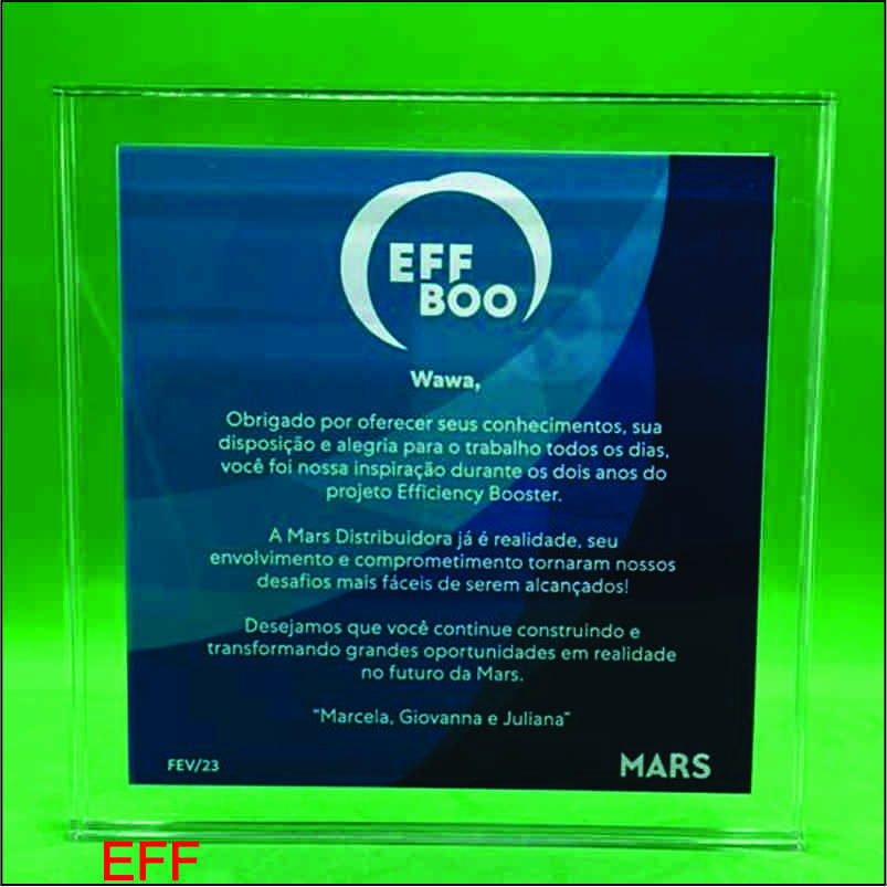 TROFEU ACRILICO SANDUICHE 15X15 DUAS PLACAS DE 15MM = 180,00.